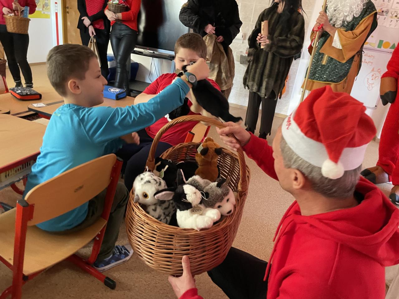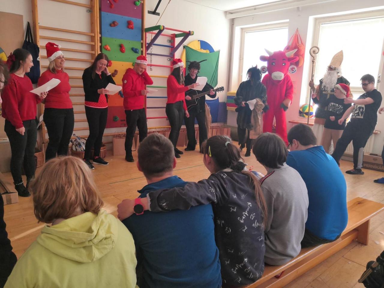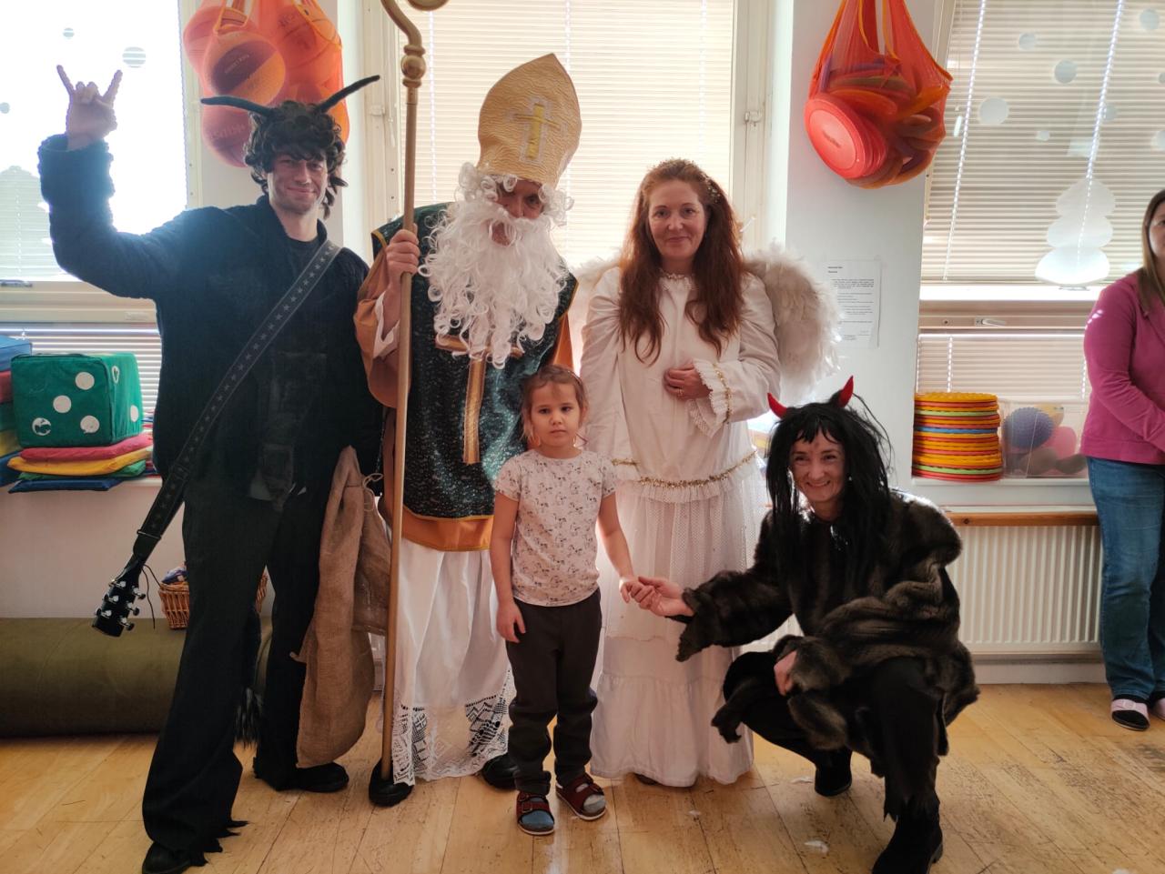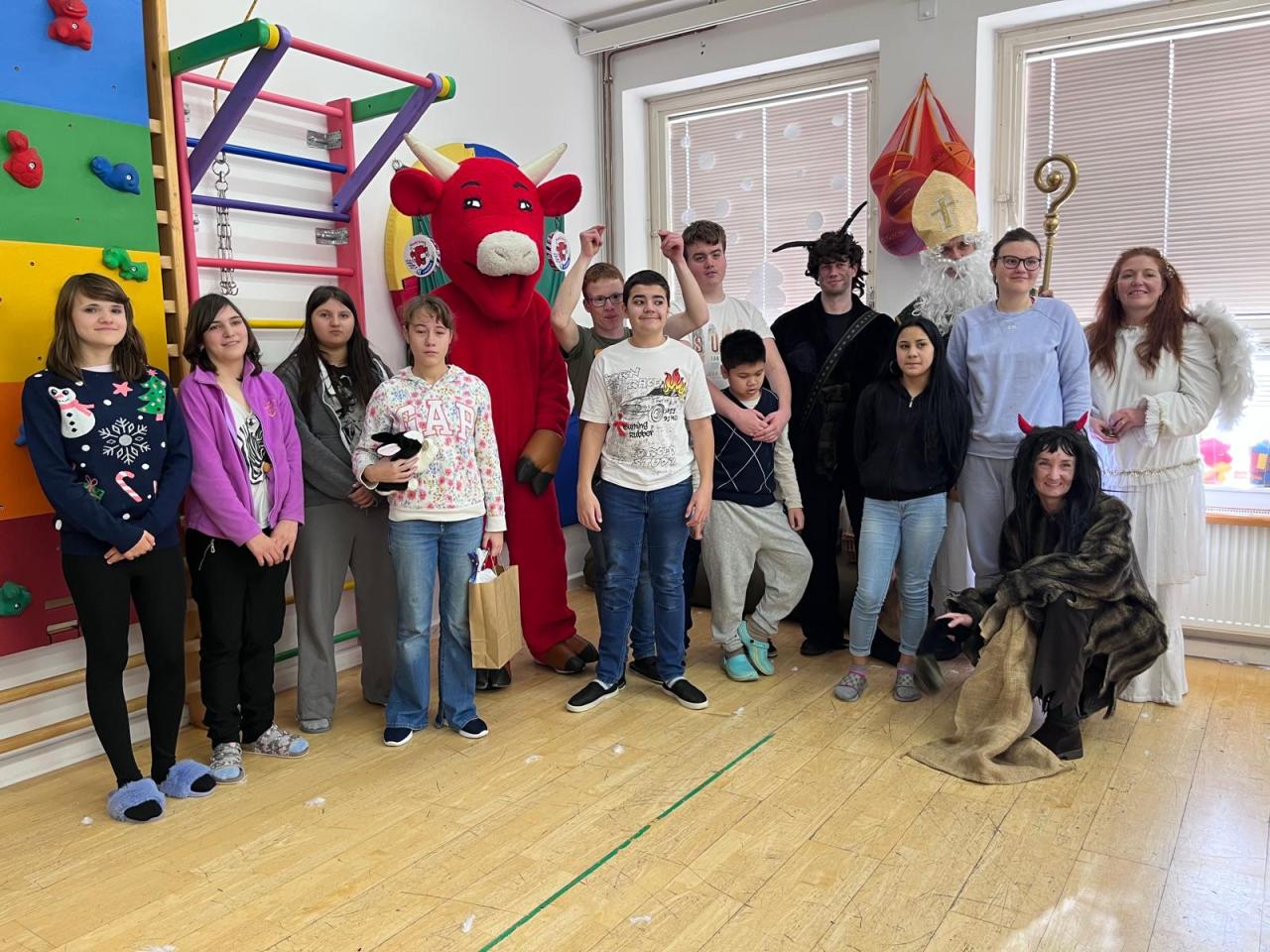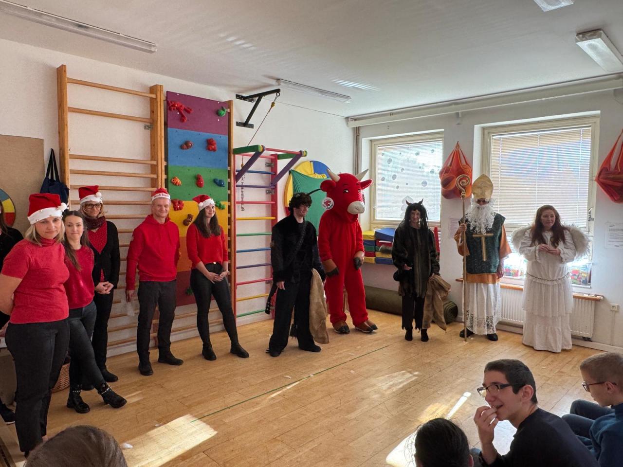 Ve škole nás navštívili tradiční postavy Mikuláš, čert a anděl a i netradiční Veselá kráva - sponzor mikulášského dne byla firma Bel sýry Česko. Za podporu děkujeme i OS Přístav.