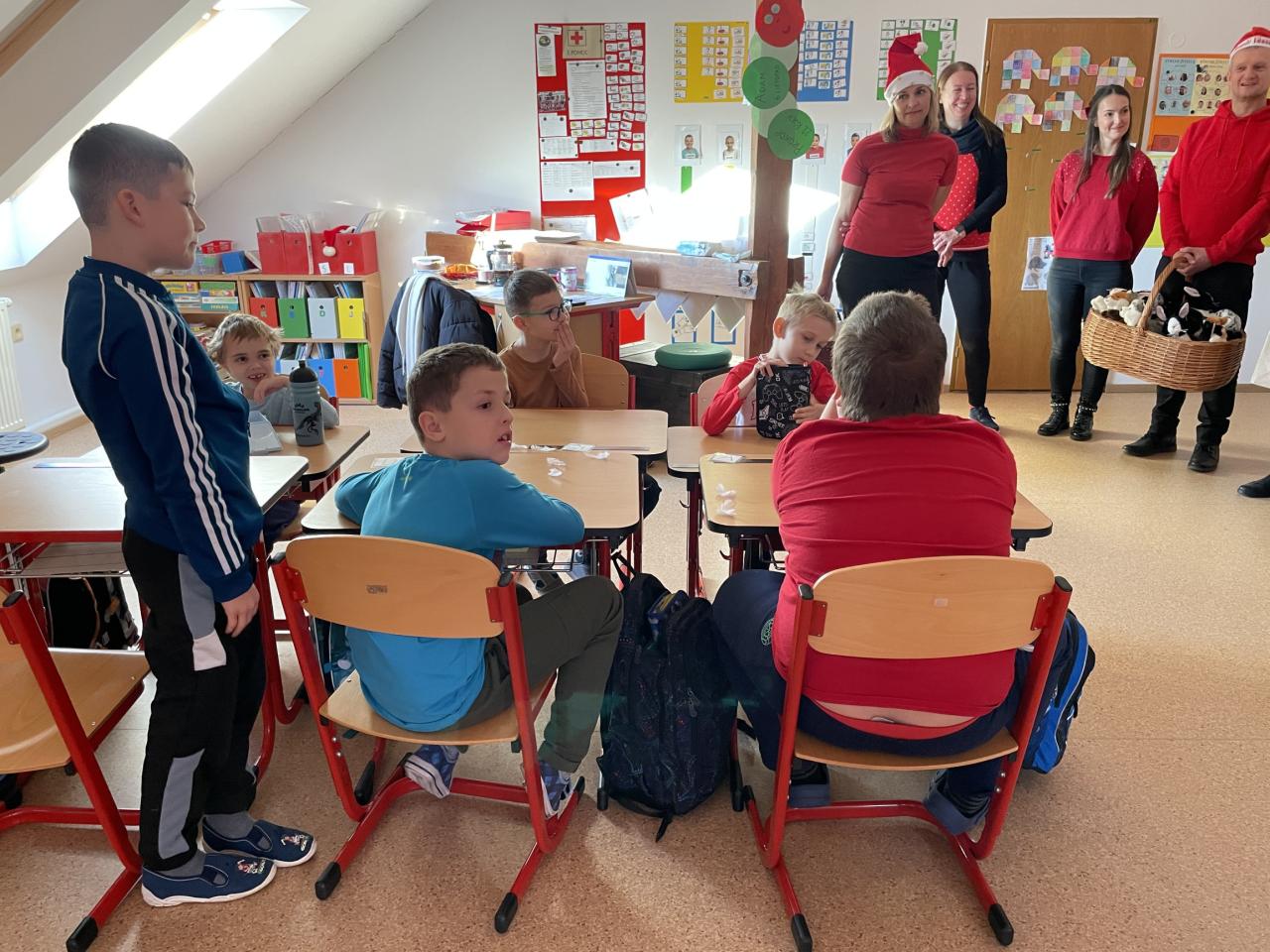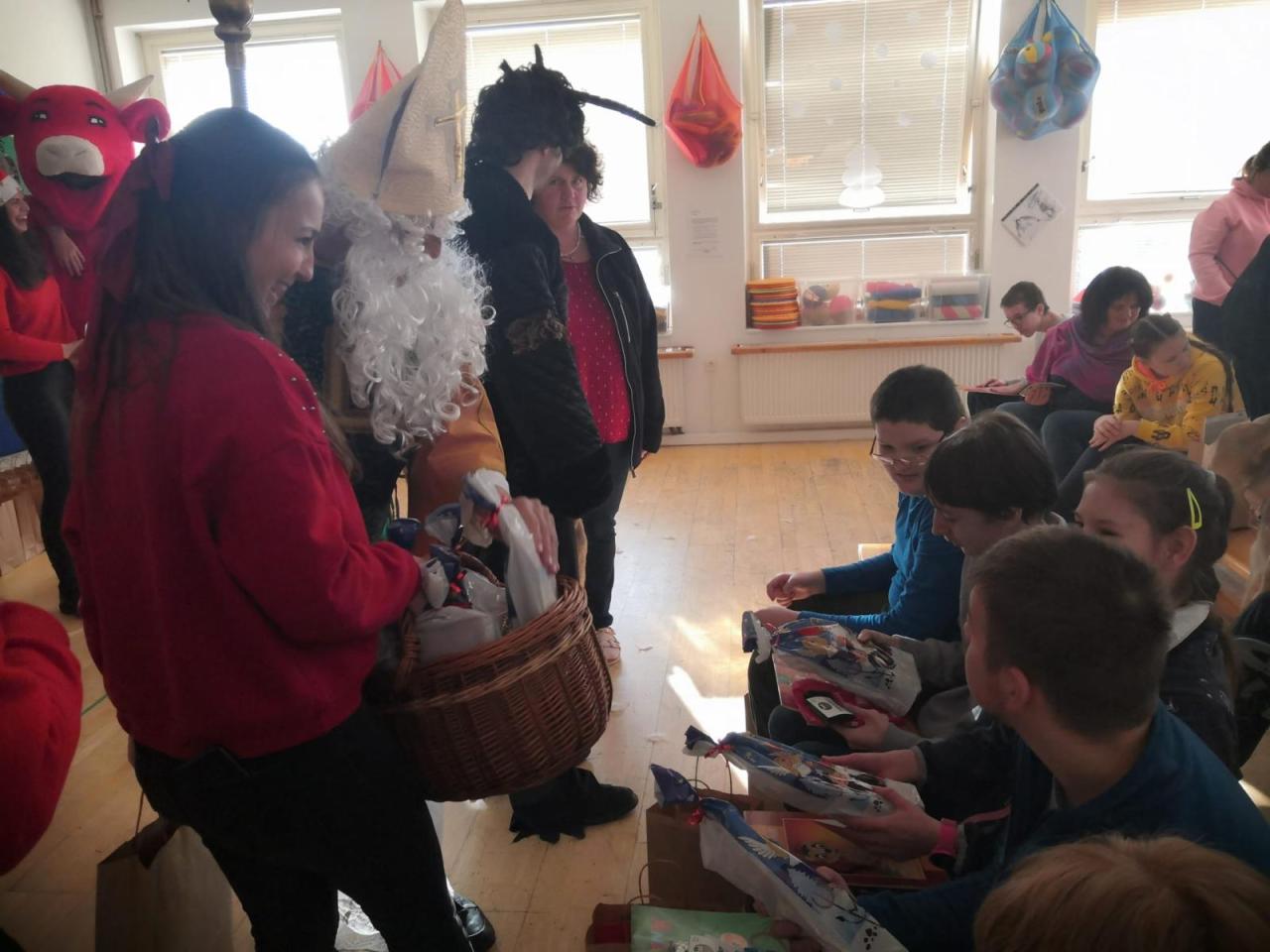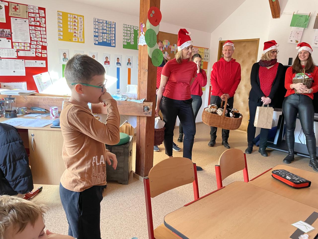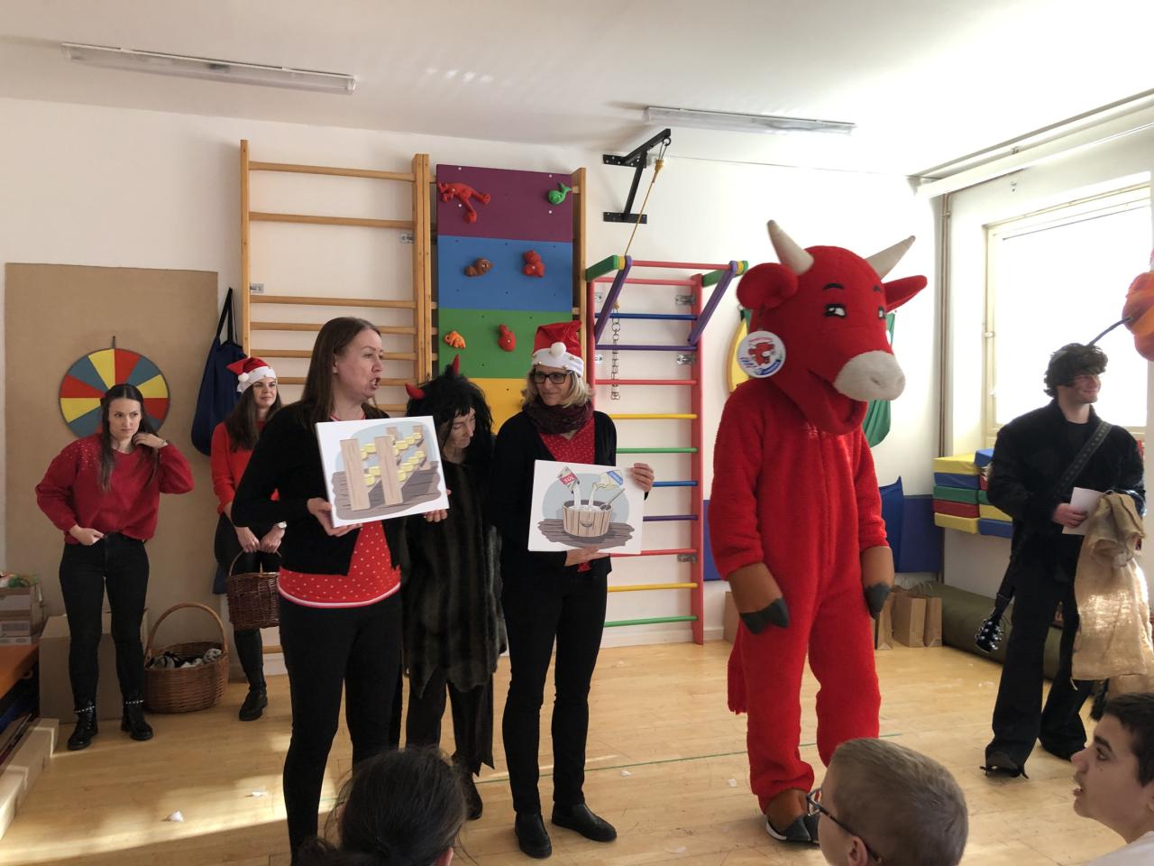 Ve škole nás navštívili tradiční postavy Mikuláš, čert a anděl a i netradiční Veselá kráva - sponzor mikulášského dne byla firma Bel sýry Česko. Za podporu děkujeme i OS Přístav.