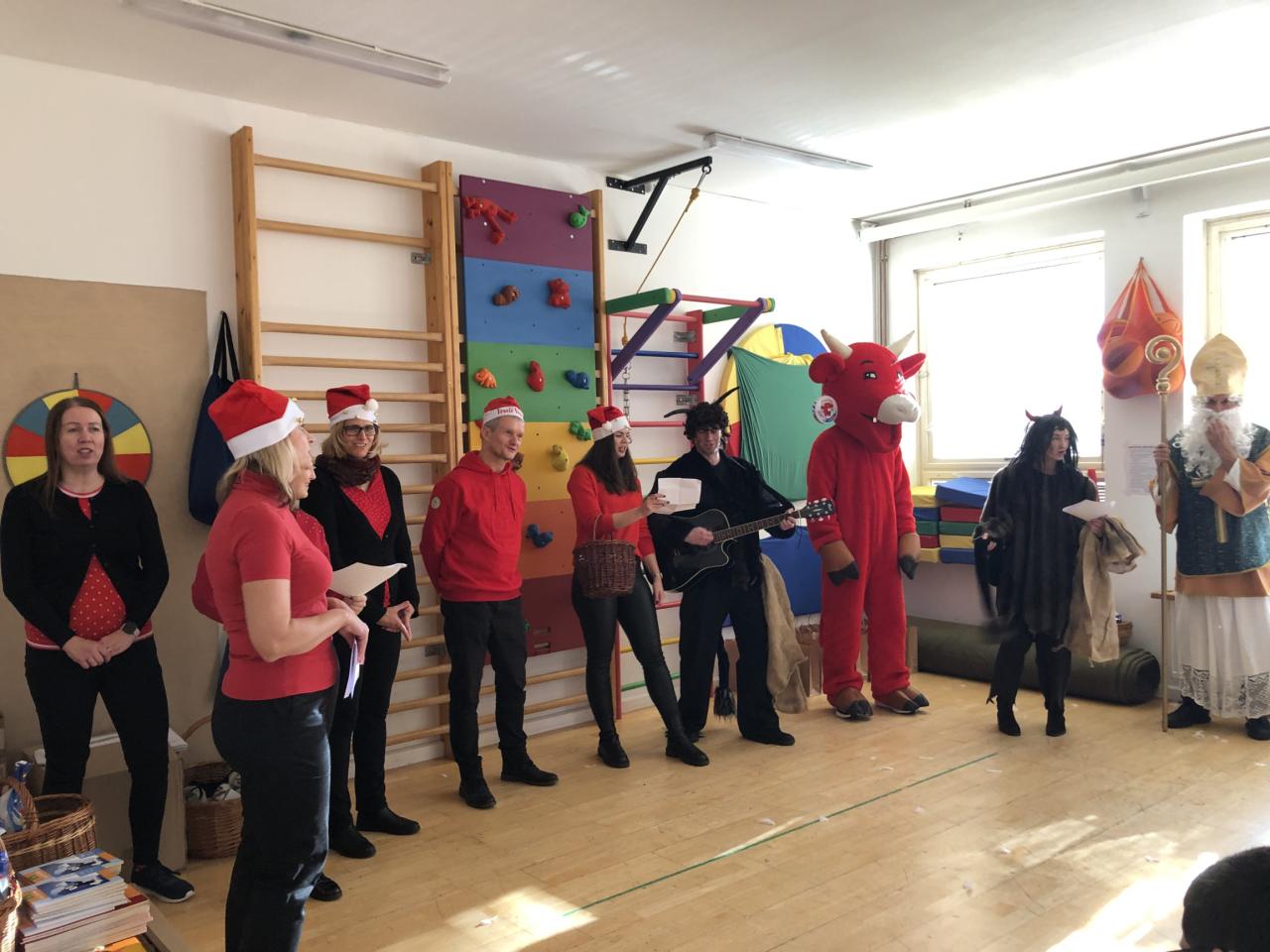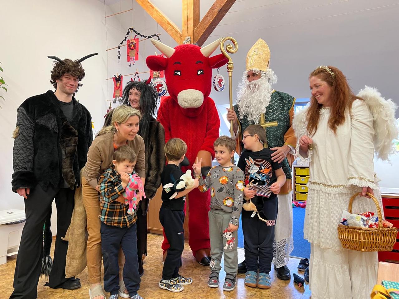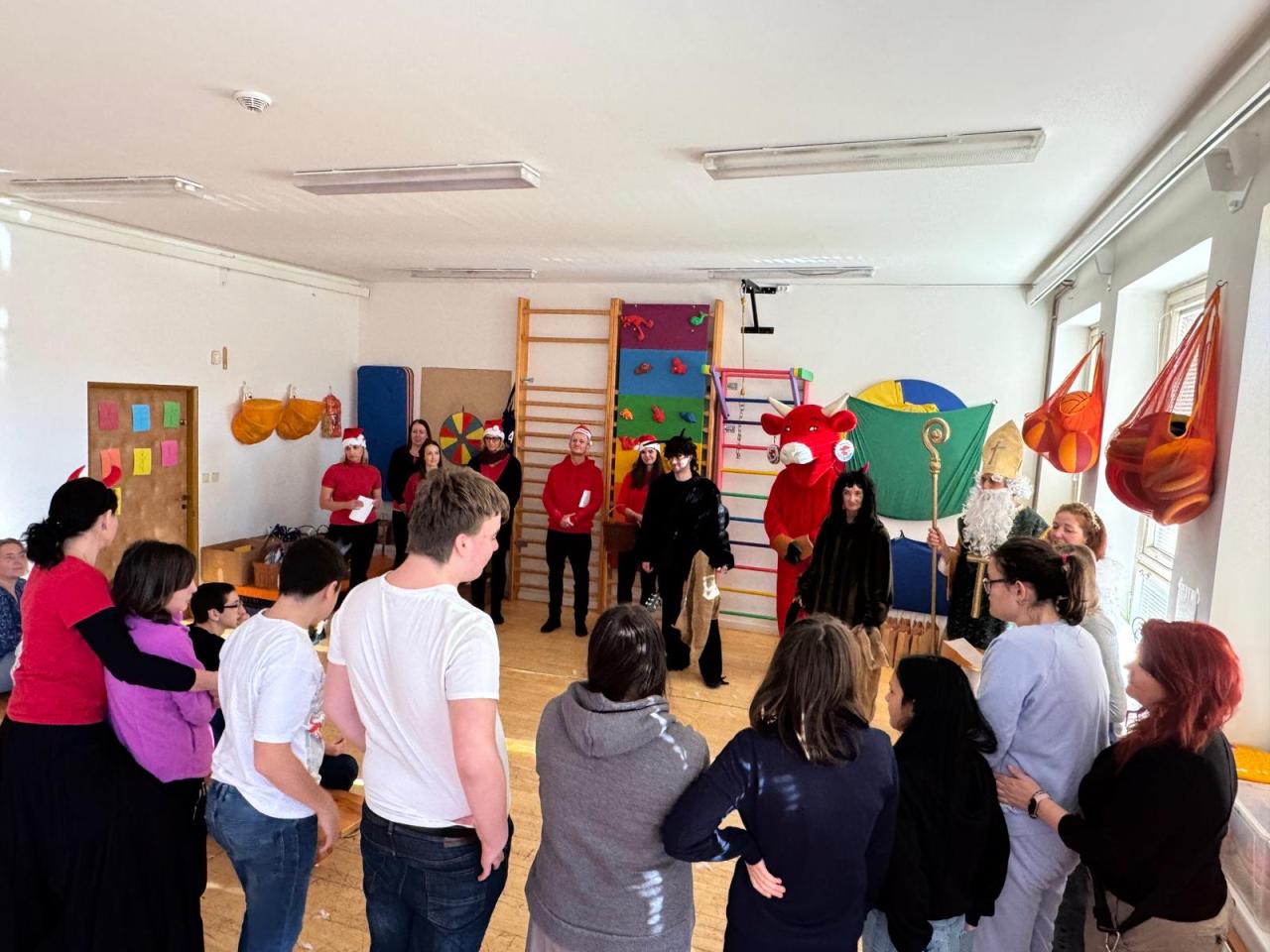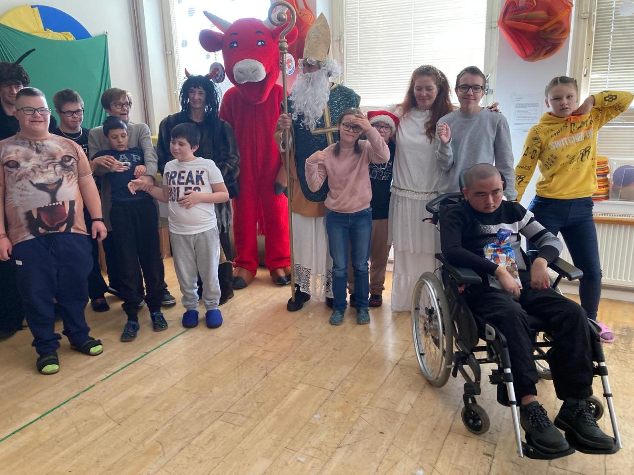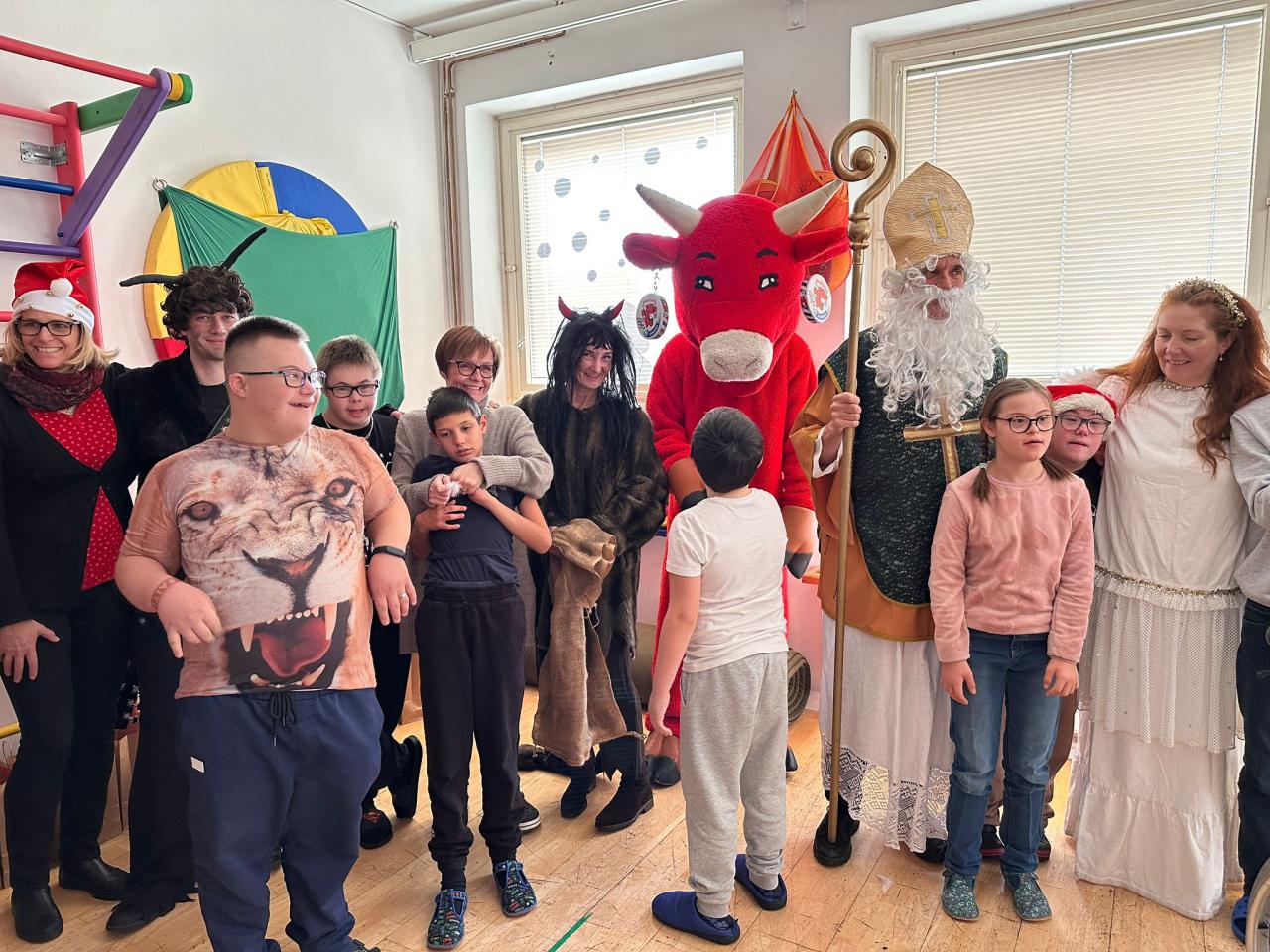 Ve škole nás navštívili tradiční postavy Mikuláš, čert a anděl a i netradiční Veselá kráva - sponzor mikulášského dne byla firma Bel sýry Česko. Za podporu děkujeme i OS Přístav.