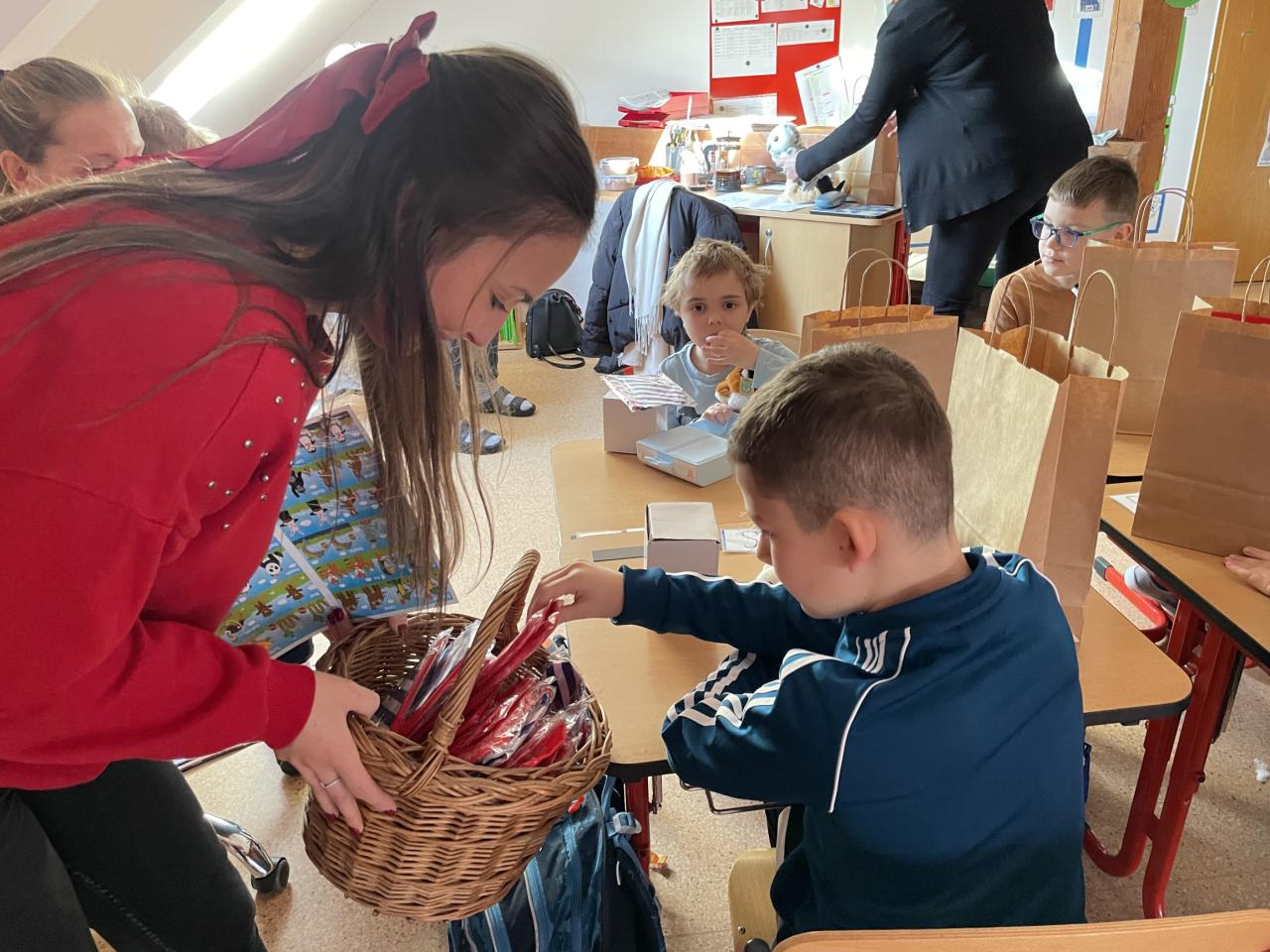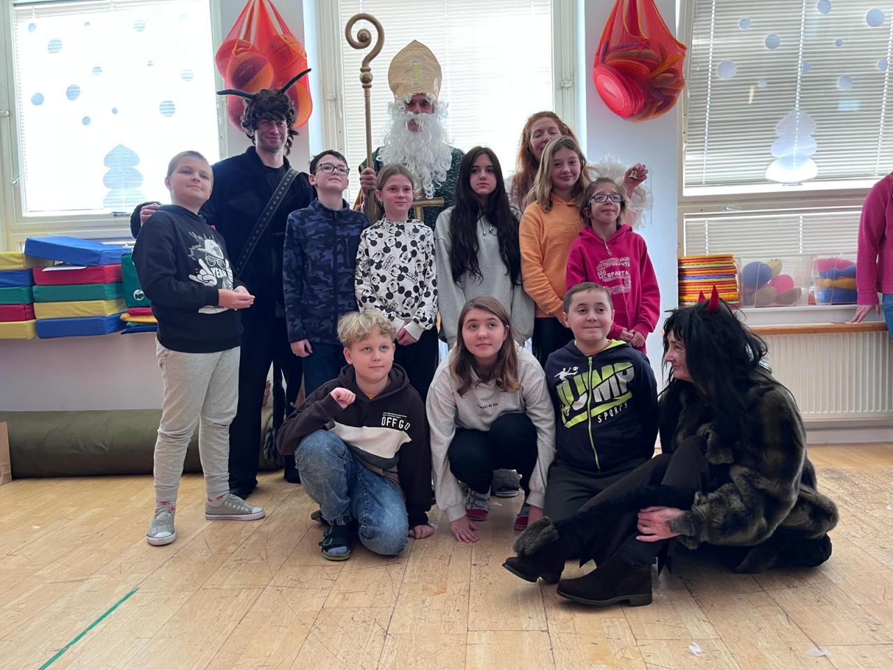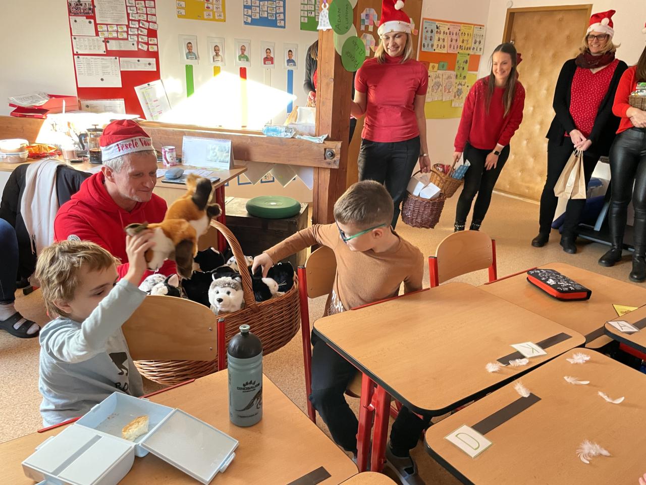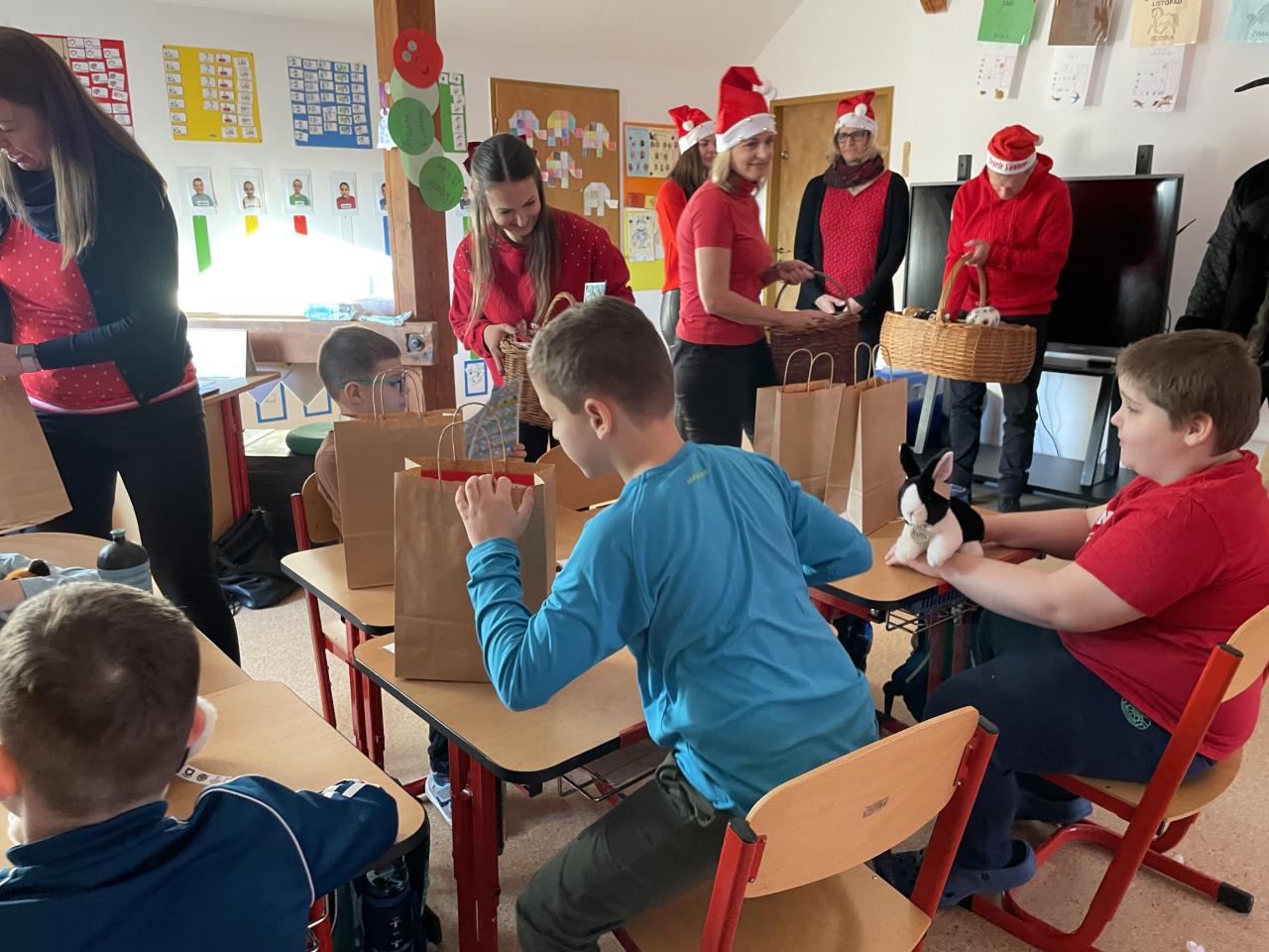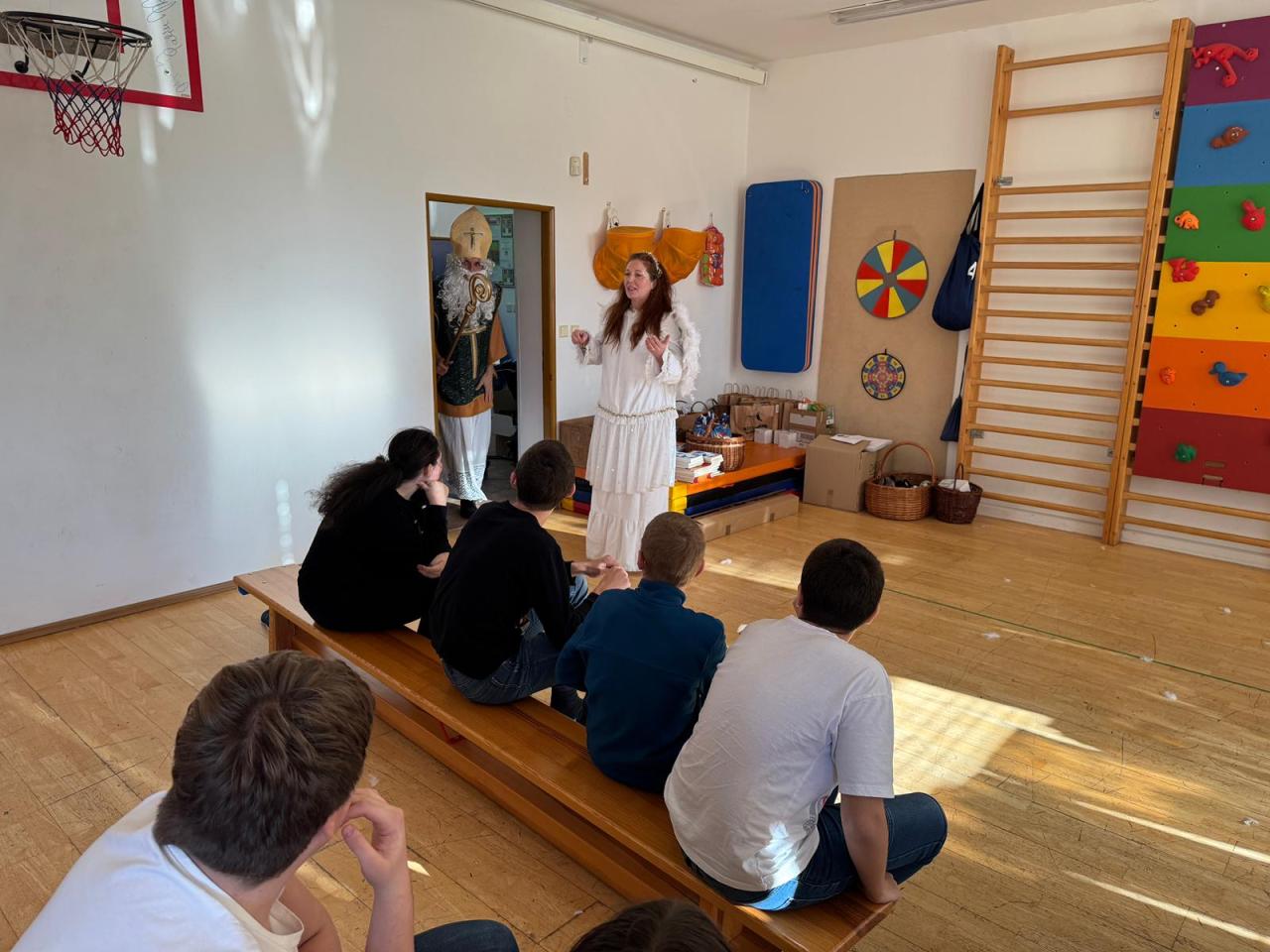 Ve škole nás navštívili tradiční postavy Mikuláš, čert a anděl a i netradiční Veselá kráva - sponzor mikulášského dne byla firma Bel sýry Česko. Za podporu děkujeme i OS Přístav.