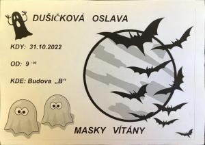 V pondělí 31.10. se v naší škole uskutečnila Dušičkovo-Halloweenská oslava, kterou si pro své spolužáky a kolegy nachystala třída 9.A ve spolupráci s 5.B.