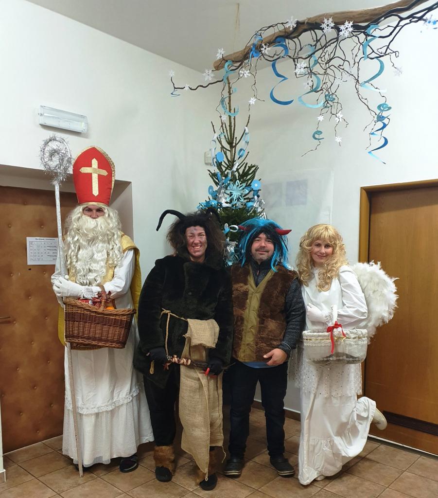 I k nám v předvánočním čase zavítal Mikuláš, anděl a v letošním roce dokonce dva čerti. Škola se rozezněla říkadly a básničkami, ze tříd vycházely zvuky různých doprovodných hudebních nástrojů a tak peklo pro naše žáčky zůstalo i letos zavřené. Ani uhlí, ani dříví ve výslužce nebylo. Občas někdo z dětí slíbil na čertovský roh či oháňku, že se polepší a tak s čistou čarovnou listinou čtveřice pohádkových postav mohla ze školy po poledni odejít.