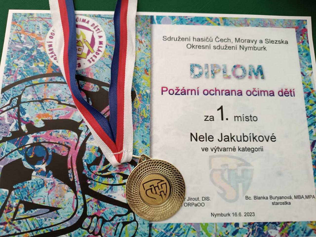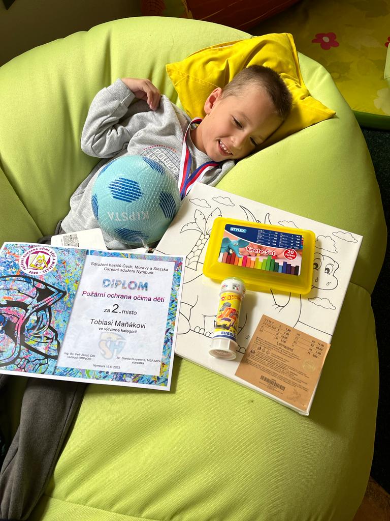Ve výtvarné soutěži „Požární ochrana očima dětí" se na prvních třech místech v mladší kategorii umístily děti z naší školy. Moc gratulujeme Nelince Jakubíkové, Tobíkovi Maňakovi a Moničce Moučkové. Ve starší kategorii získala 1. místo Iveta Perglerová.