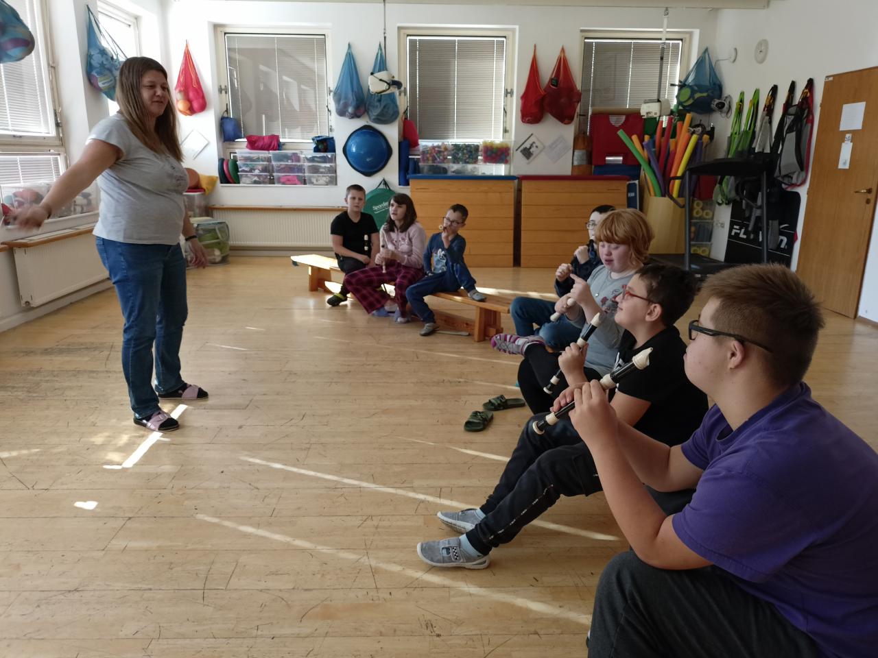 I v letošním školním roce se scházíme na hudebním kroužku vedeném pod DDM Poděbrady. Celý rok se budeme seznamovat s hudebními nástroji a vším, co potřebují hudebníci, aby se spolu mohli „domluvit“ a zahrát si společně. Společně zkoušíme, co se s různými hudebními nástroji dá dělat, jak se na ně hraje a jak se udržují. Každý týden využíváme ke společnému zpěvu náš nejbližší a nejdůležitější nástroj – vlastní hlas. Společný čas si moc užíváme a rádi poznáváme taje hudby.