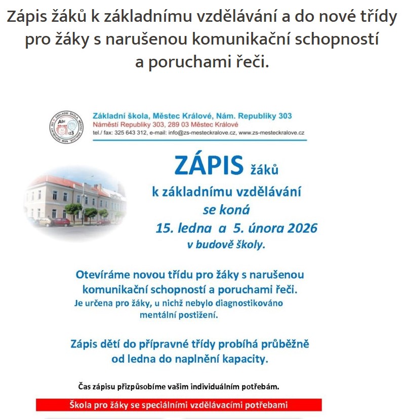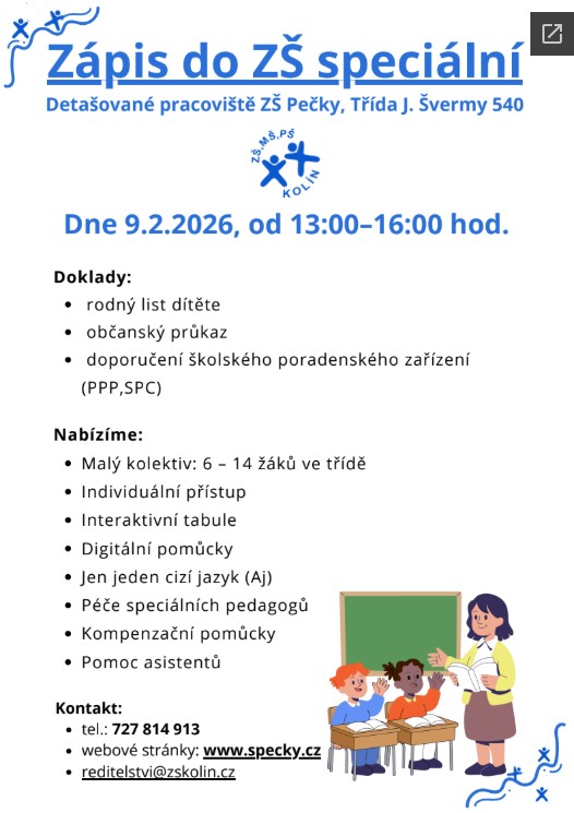 Další informace najdete na webových stránkách Speciálních ZŠ v Městci Králové a v Pečkách (pobočka speciální školy v Kolíně).